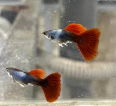 Red guppies which are highly demanded in the market got its popularity because of its rich red colour. The red guppy has two colours of pigments which are carotenoid red and a pteridine red. The carotenoid red gets from food and also it has health benefits. The female guppies are attracted to red spots for breeding. The red guppies are classified into different variants by their unique body colour and structure. They are full red, blond half blackfull red, albino full red, marlbaro guppy, albino glass belly red spear tail, mosaic red fantail and blond big dorsal red tail.